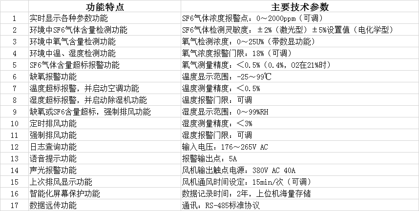 室內(nèi)SF6氣體、氧氣在線監(jiān)測報警系統(tǒng),是針對變電站室內(nèi)SF6組合電器設備SF6絕緣氣體泄漏的在線式監(jiān)測報警系統(tǒng),主要應用在變電站內(nèi)35kV SF6開關室,500kV、220kV、110kV GIS室,SF6實驗室儲存室以及其他安裝SF6設備的室內(nèi)環(huán)境的綜合監(jiān)測。對環(huán)境中SF6氣體泄漏情況和空氣中含氧量進行實時監(jiān)測。本系統(tǒng)采用新型高靈敏度傳感器,自有的紅外激光技術。當室內(nèi)SF6及O2的濃度發(fā)生微小變化時,傳感器立即能響應這一變化,經(jīng)單片機處理將信號傳之控制器。控制器對數(shù)據(jù)處理、存儲、彩色顯示、報警、風機,除濕,調溫控制,并將結果傳送到遠程計算機。